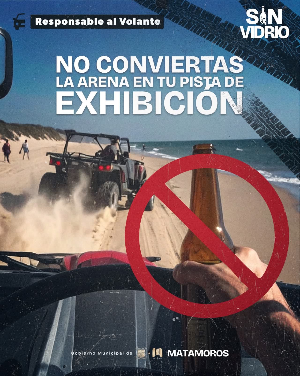 H. Matamoros, Tamaulipas.- Conducir una cuatrimoto u otro vehículo bajo los efectos del alcohol no es una hazaña… es un riesgo. Pones en peligro tu vida y también la de quienes te rodean, por lo cual, el Gobierno de Beto Granados exhortó a pasar un verano seguro.