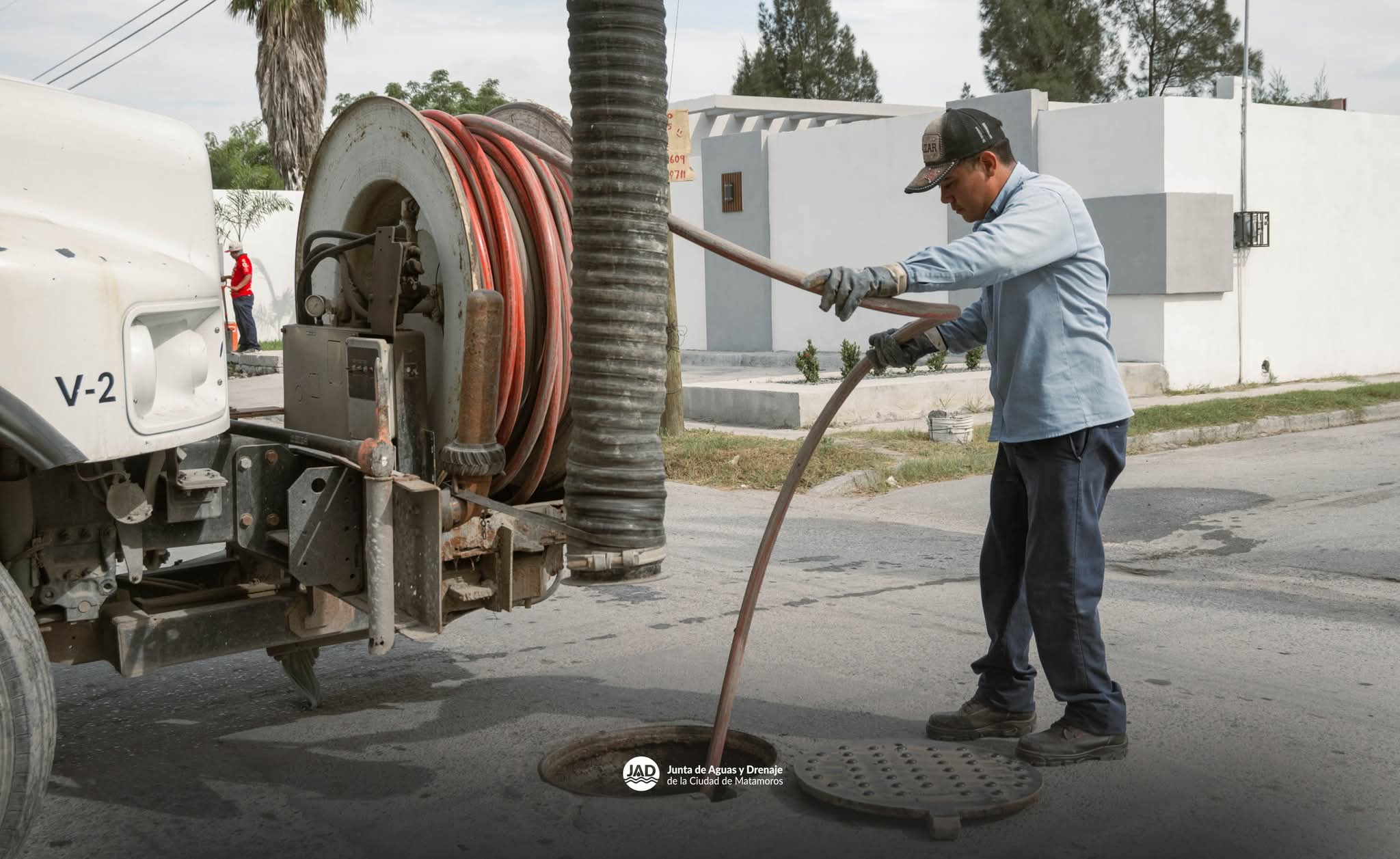 H. Matamoros, Tamaulipas.- El Gobierno Municipal de Matamoros, a través de la Junta de Aguas y Drenaje, continúa trabajando en acciones preventivas para evitar encharcamientos y taponamientos durante la temporada de lluvias, por ello se realizan labores de limpieza y desazolve con el camión Vactor en distintos sectores de la ciudad.