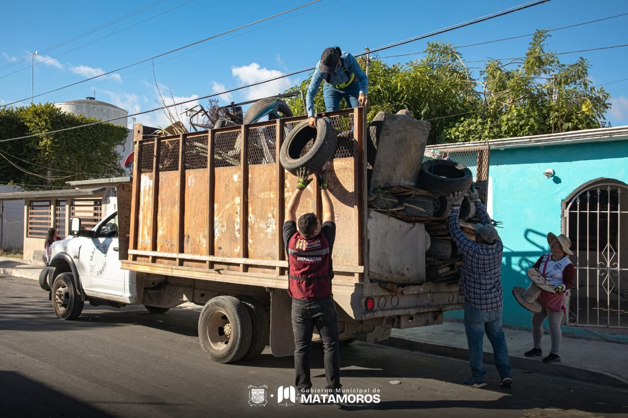 H. Matamoros, Tamaulipas.- El Gobierno de Matamoros, encabezado por el alcalde Beto Granados, continúa llevando a cabo las jornadas permanentes de descacharrización en distintos sectores del municipio.
