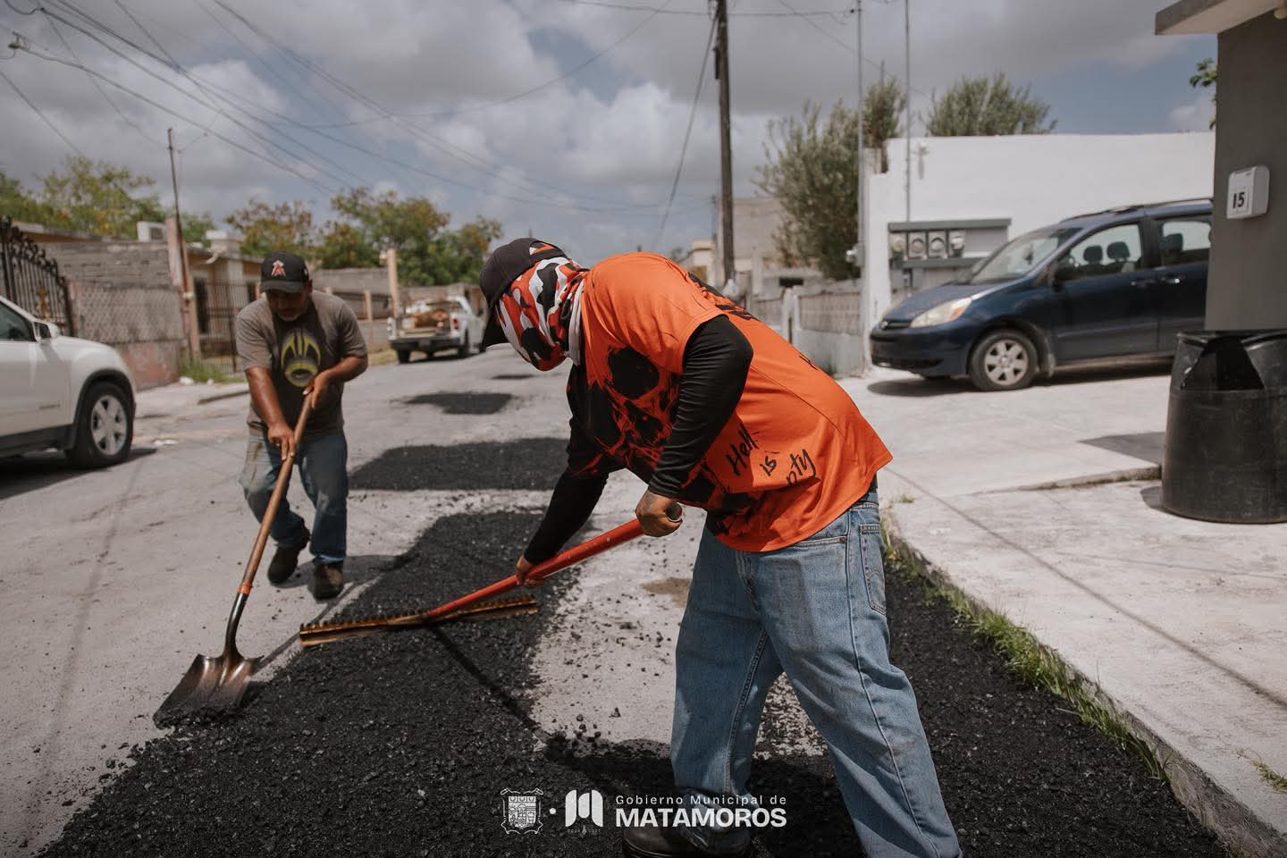 Cuadrillas de trabajo realizaron labores de rehabilitación de calles, nivelación y bacheo, dando respuesta directa a una de las principales demandas de la población: contar con vialidades dignas, seguras y transitables con las que Matamoros avanza.