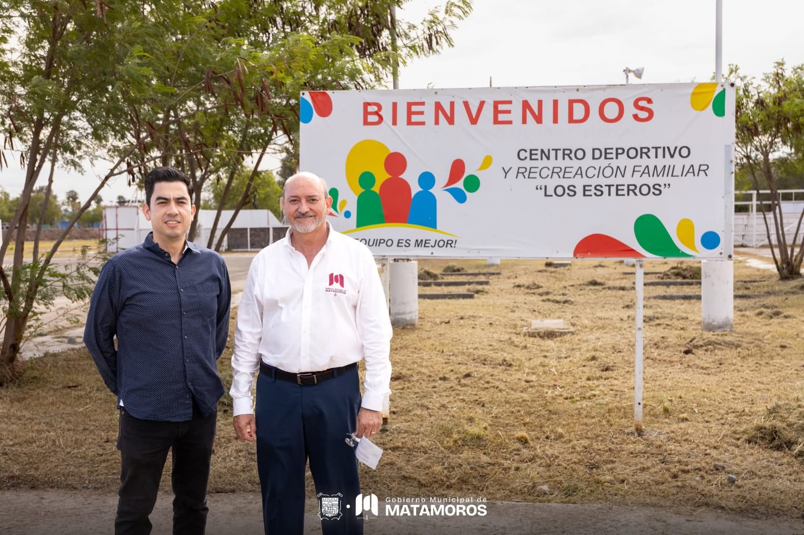 Matamoros, Tam.- El Gobierno Municipal de Matamoros, encabezado por el alcalde Beto Granados, continúa impulsando acciones que transforman la ciudad y mejoran la calidad de vida de sus habitantes. Como parte de la Acción Social Municipal “Adopta, Brilla y Transforma Espacios Verdes”, se realizó la supervisión del proyecto del Centro Deportivo y Recreación Familiar “Los Esteros”, adoptado por el Dr. Ricardo Viveros Ochoa con el compromiso de fomentar valores, deporte y el cuidado del medio ambiente.