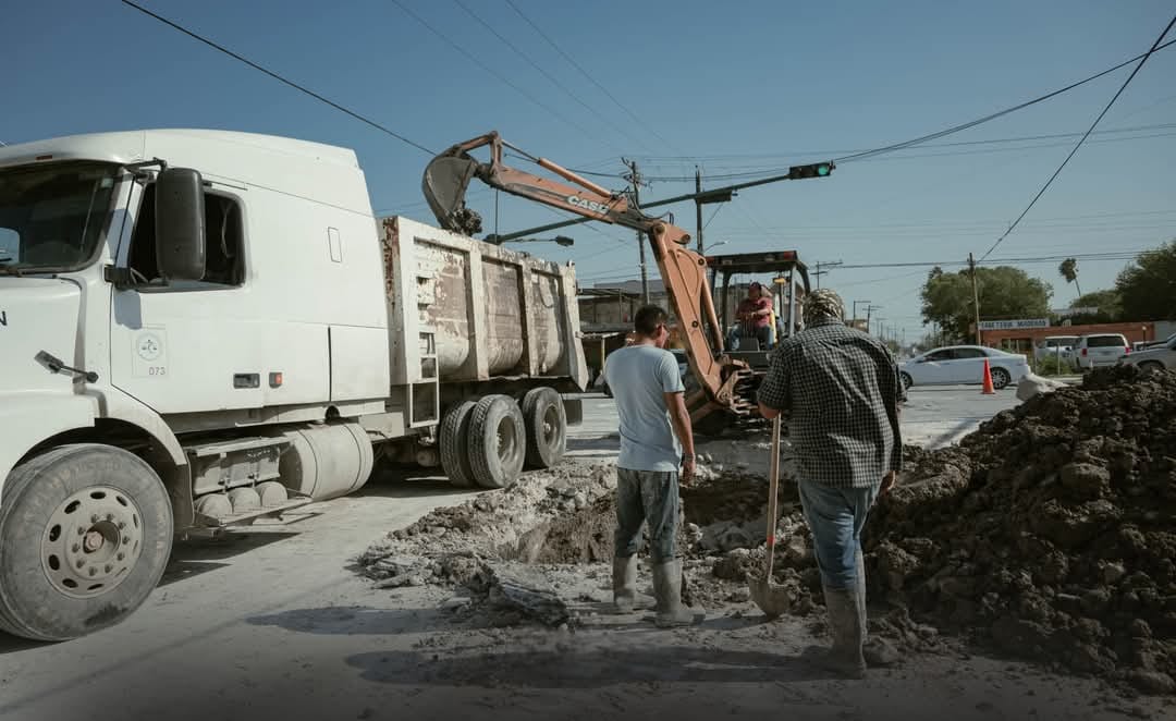 Actualmente, se llevan a cabo labores de reparación en un colector de 30 pulgadas en las calles Roberto Guerra y Fidencio Trejo, en la colonia Popular.